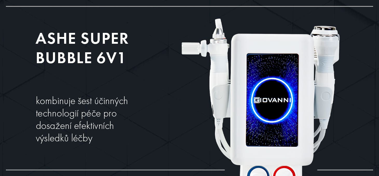 V našem studiu La Rose využíváme inovativní přístroj Giovanni Ashe Super Bubble, který spojuje šest pokročilých technologií — hydrodermabrazi, kavitační peeling, ultrazvuk, mikroproudy (biolifting), chladící hlavu a vakuum se sprejem. Tento multifunkční přístroj je ideální pro všechny typy pleti, včetně stárnoucí, citlivé, problematické či hyperpigmentované. Díky jedinečné kombinaci těchto technologií poskytujeme péči, která pleť vyživí, zpevní a rozzáří.